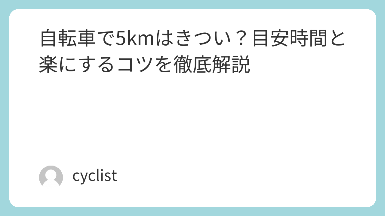 自転車で5kmは、平坦で止まる回数が少なければ約17〜25分が目安。信号・坂・向かい風・重い荷物が重なると30分以上もあります。通学で続けるなら「時間の余裕」「汗と荷物」「安全ルール」を先に整えるのが近道です。「自転車で5kmって、毎日だときついのかな」「朝の登校に間に合う?汗は?制服は大丈夫?」――同じ5kmでも、信号で止まる回数や坂、風、荷物の重さで体感は大きく変わります。さらに通学は、朝の混雑・通学路の安全・学校の駐輪ルールなど“距離以外の条件”が多め。この記事では、5kmの時間の目安を作りつつ、きつさの原因を切り分けて、通学でも無理なく続けるための準備と走り方をまとめます。この記事で分かること