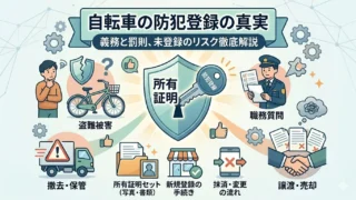 自転車の防犯登録証明書がない場合は、都道府県で必要書類や抹消方法が違うため、公式案内と窓口確認が必須です。本人確認が必要な理由、控えなしでも抹消できる条件、譲渡時にカードを失くした時の対応、盗難届の進め方まで一次情報リンク付きで整理しました。