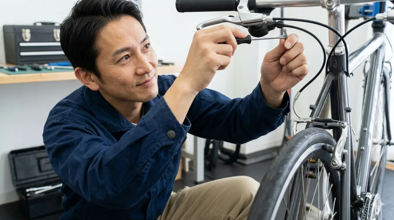 ブレーキまわりは、少しの調整で直ることもありますが、触る範囲を間違えると「効かない」「戻らない」「異音が増える」といった別の不具合につながります。大切なのは、何でも自分で直そうとせず、確認・軽い調整・清掃までに留める部分と、最初から店に任せる部分を分けることです。