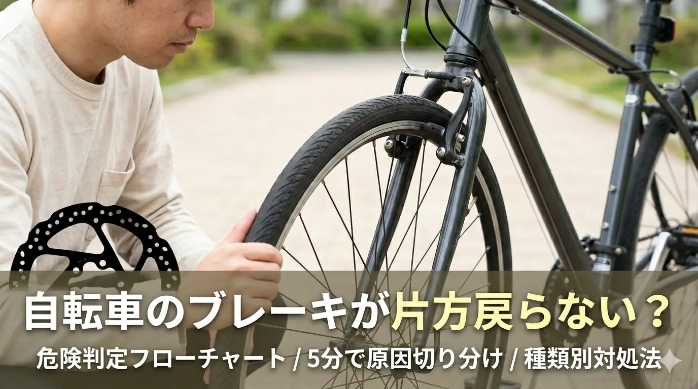 自転車のブレーキが片方だけ戻らない、または後輪ブレーキがかかりっぱなしになっているときは、まず走行を止め、「今乗ってよい状態か」を判断することが大切です。